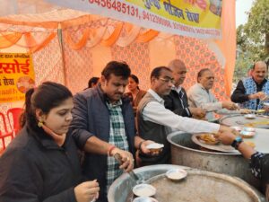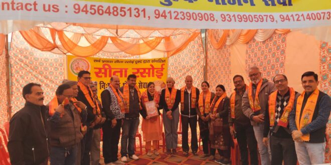 सीता रसोई के अध्यक्ष उदय भान सिंह ने बताया कि सीता रसोई की स्थापना 29 जनवरी 2019 को चार सदस्यों ने मिलकर की थी जिसमें सर्वश्री सुधांशु कौशिक संजीव शर्मा धीरज गुप्ता और उदयभान सिंह के द्वारा इसकी स्थापना की गई थी उद्देश्य यह था कि समाज का कोई भी व्यक्ति भूखा ना सोए और इसी उद्देश्य को लेकर सीता रसोई के द्वारा निशुल्क भोजन वितरण का कार्य प्रारंभ कर दिया गया तथा संस्था के द्वारा कोरोना काल के दौरान भी प्रतिदिन 300 व्यक्तियों के घर पर भोजन पहुंचाने का कार्य संस्था के द्वारा किया गया इसी क्रम में संस्था के द्वारा बहुत सारे सामाजिक कार्य किये जा रहे हैं जिसमें रजाई वितरण का कार्य धार्मिक आयोजन जैसे भागवत कथा का आयोजन राम कथा का आयोजन सुंदरकांड का आयोजन एवं गरीब कन्याओं के विवाह हेतु सहायता फ्री दवाई वितरण फ्री शैक्षिक सामग्री का वितरणएवं छोटे बच्चों की एवं गरीब कन्याओं के पढ़ाई के लिए फीस की व्यवस्था करना यह संस्था का मुख्य उद्देश्य बन गया और आज भी पूरे महानगर के क्षेत्र में सीता रसोई भोजन रथ के माध्यम से महानगर के विभिन्न क्षेत्रों में गरीब एवं जरूरतमंद लोगों को भोजन का वितरण किया जाता है महानगर वासी अपने प्रिय जनों के जन्म दिवस के अवसर पर पुण्यतिथि के अवसर पर वैवाहिक वर्षगांठ के अवसर पर एवं विशेष अवसरों पर सीता रसोई के माध्यम से भोजन का वितरण करवाते हैं महासचिव सुधांशु कौशिक जी ने यह बताया कि सीता रसोई किसी भी तरह का कोई सरकारी सहायता नहीं लेती है समस्त सेवा कार्य जनता एवं समाजसेवी लोगों के सहयोग से किया जा रहे हैं ! संजीव शर्मा जी ने आए हुए अतिथियों काअंग वस्त्र भेंट करके स्वागत अभिनंदन किया तथा धीरज गुप्ता ने सभी का आभार व्यक्त किया संस्था में विशेष सहयोग श्रीमान हृदय कुमार सिंह श्रीमान सुनील कुमार शर्मा एवं विवेक पांडे राजेंद्र प्रसाद सक्सेना सत्य प्रकाश वार्ष्णेय रूपचंद मित्तल सुनील कपूर पवन कपूर धर्म प्रकाश शर्मा सहित लगभग 250 परिवार सीता रसोई से जुड़कर अपना सहयोग प्रदान कर रहे है और समाज के अन्य लोगों का सहयोग सीता रसोई के माध्यम से मिलता रहता है जूही माथुर दीपक गुप्ता आदि सभी लोग सीता रसोई पर पहुंचकर अपनी सेवाएं देते हैं इस अवसर पर आज का जो भोजन वितरण में सहयोग रहा वह अनूप शर्मा जी ने अपनी पत्नी की जयंती के उपलक्ष्य में सिद्धांत शर्मा डॉक्टर तूलिका शर्मा श्रद्धा शर्मा एवं उनका पूरा परिवार उपस्थित रहा।