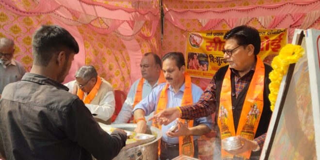प्रत्येक दिन के भांति आज भी रविवार के दिन भी सीता रसोई के द्वारा चलते-फिरते राहगीरों को निशुल्क भोजन वितरित किया गया सीता रसोई के अध्यक्ष उदयभान सिंह ने बताया कि आज जो भोजन का वितरण किया गया है वह प्रायोजित रहता है आज के भोजन में सहयोग श्रीमती यशिका गर्ग जी गीतिका गर्ग जी एवं गरिमा अग्रवाल जी के द्वारा पूरी सब्जी और हलवे कई व्यवस्था की गई जिसको सभी लोगों ने भरपूर आनंद के साथ प्रसाद ग्रहण किया सीता रसोई पर आज साधु संतों की मंडली भी आई जिसमें से भजनों की प्रस्तुति से पूरे पंडाल को संगीत में कर दिया सर्वप्रथम भगवान राम की स्तुति करते समय संस्था के संरक्षक पुनीत अग्रवाल ने दीप प्रज्वलित करके श्री राम की स्तुति की गई उसी क्रम में संरक्षक हृदय कुमार सिंह ने आए हुए अतिथियों का स्वागत बंधन किया संस्था के संरक्षक एवं कोषाध्यक्ष सुनील कुमार शर्मा जी ने बताया कि संस्था किसी प्रकार से कोई सरकारी सहयोग नहीं लेती है महिला विंग की अध्यक्ष सुप्रीत सिंह ने बताया कि संस्था के द्वारा आने वाले होली के त्योहार पर सांस्कृतिक कार्यक्रम का आयोजन किया जाएगा इसके लिए जल्दी ही संस्था की बैठक आयोजित की जाएगी आज के भोजन वितरण में व्यवस्था में प्रमुख रूप से सहयोग करता के रूप में विवेक कुमार पांडे दीपक गुप्ता संजीव शर्मा राकेश कुमार वर्मा सत्य प्रकाश वार्ष्णेय जूही माथुर राजेश सक्सेना सुनील कपूर पवन कपूर श्रीपाल राणा धर्म प्रकाश शर्मा नीरज गुप्ता मनोज गिरी संजीव शर्मा धीरज गुप्ता सहित सीता रसोई परिवार के लोगों ने उपस्थित रहकर के भोजन वितरण में सहयोग प्रदान किया।